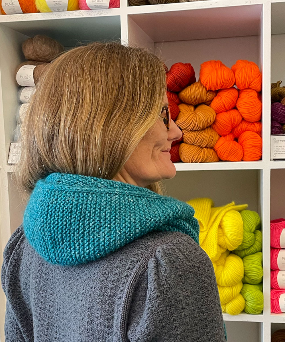 What a cleverly constructed project, scrumptious Garter Stitch broken up by the neat finishing of I-cord edges, the Sophie Hood by PetiteKnit gives enough to keep you interest peaked, it grows quickly for instant satisfaction and the rhythm of this knit is incredibly soothing. I’ve claimed for years and years that there is a lot of mindfulness in knitting – OM – through each and every stitch, and this is clearly present in the Sophie Hood. No wonder this is a design that knitters want to do again and again!