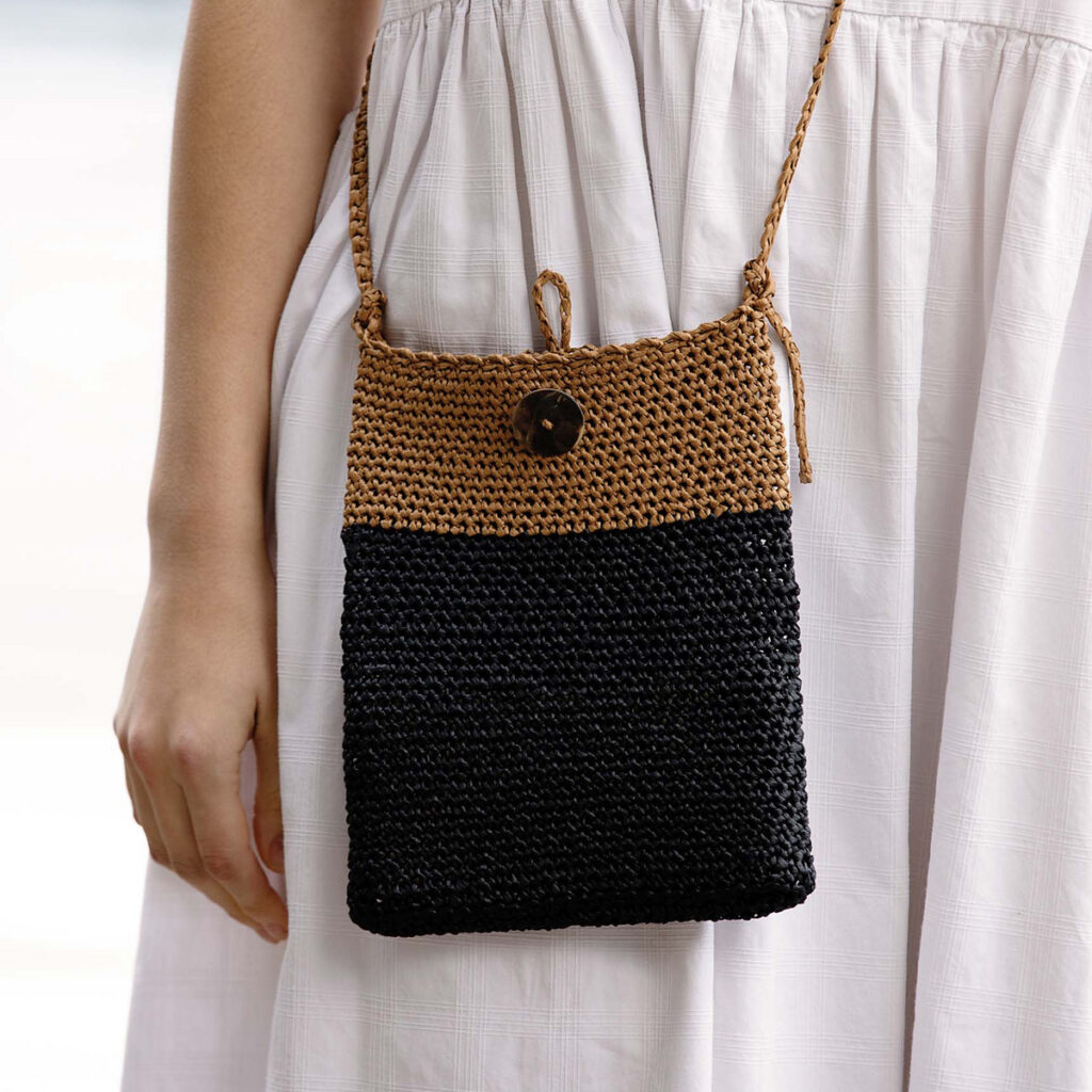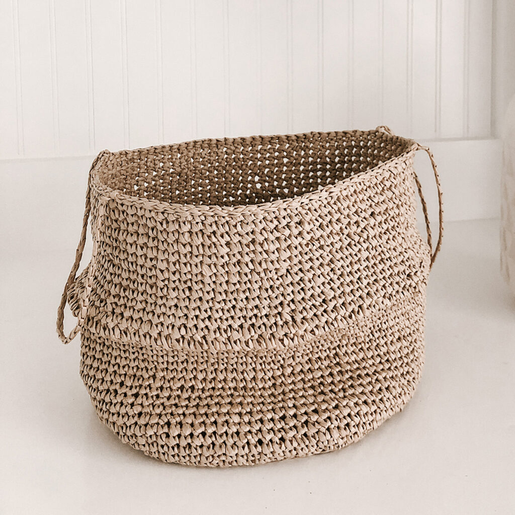 Bettakit Raffia is a 100% paper yarn. This natural fibre is biodegradable but resistant and makes a great vegan alternative to animal fibres. It is created from paper (wood cellulose) that is pulped down and formed into long strips, this means that the finished yarn is uniform and even but still retains a natural feel. Even though it is lightweight and made of paper it still has strength, it is also water-repellant and if gets splashed, it dries fast. A perfect yarn for crafting summer accessories and homewares as it can be quite structural if you go for a tight gauge. I’m thinking it’s the perfect yarn for crocheting so grab your hook and let’s take a look at some projects.