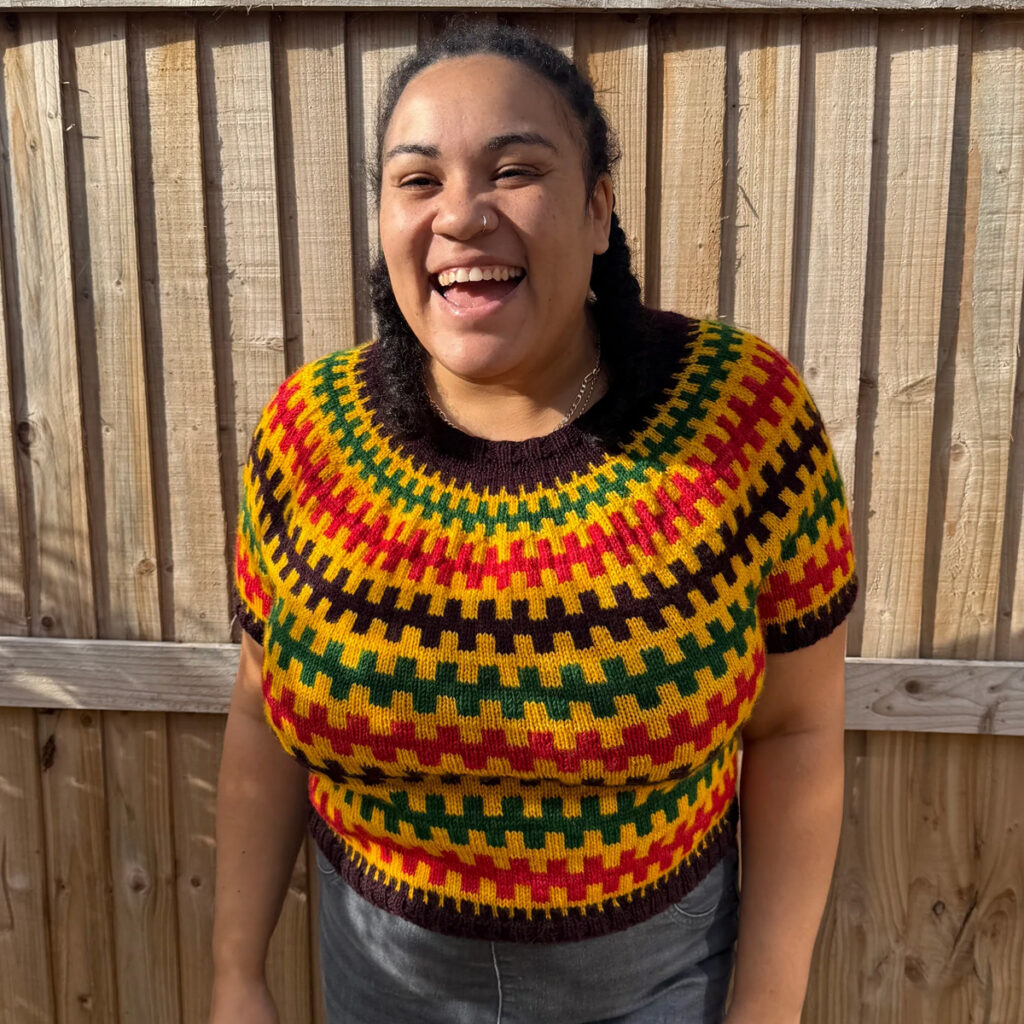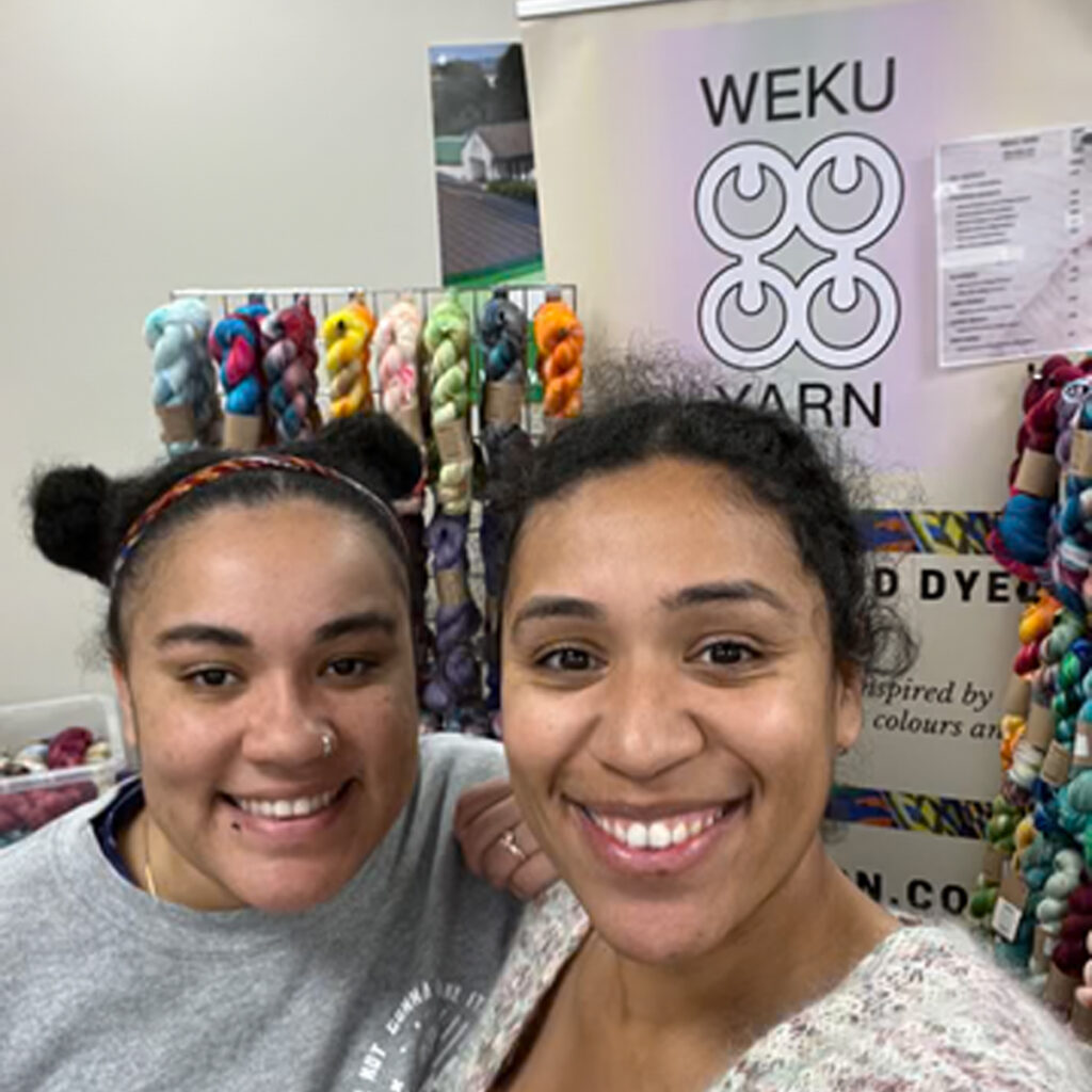 It’s always exciting introducing a new brand and especially a whole new yarn. It’s even nicer when you know the people behind it. Hannah and Lydia the creators of Weku Yarn dye beautiful colourways and since their first yarn show in 2021 have developed their range as well as exploring different yarn bases and publishing patterns. All while embracing the beautiful and bright traditional outfits and patterns of their Ghanaian heritage. Weku means family in their Dad’s native language – Ga. Being sisters who describe themselves as ‘polar opposites’, family and the mix this brings works perfectly. More recently you may even recognise Lydia from her appearance on channel 4’s ‘The Game of Wool’ where she became a finalist. The next development in Weku Yarn is their own custom blend Bukom DK which launched in March this year and now we are pleased to say it has landed on the shelves of Knit With Attitude. So let’s find out more about it.