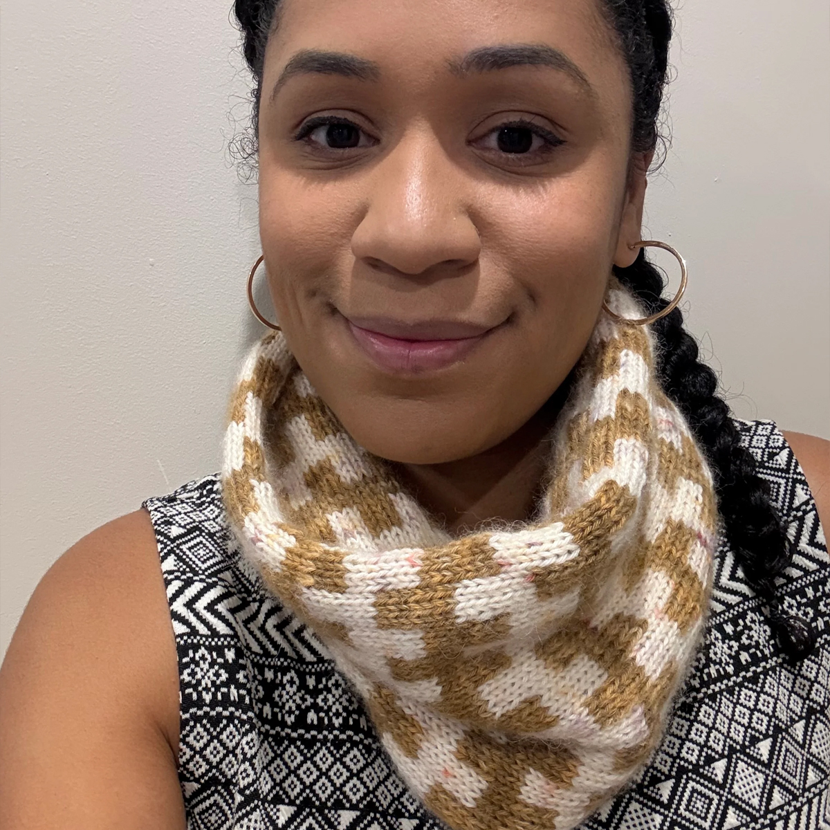 Interwoven Cowl (link to designers website) – This cowl takes the motif from the Interwoven Sweater. A great warm up project if you are thinking of doing the jumper. Knit as a continues tube starting with a provisional cast on and then grafted together at the end. Only two colours are used per row and the floats are no longer than three stitches making this a simple project with no long floats to deal with. To knit this in Bukom DK you will need two of each colour.